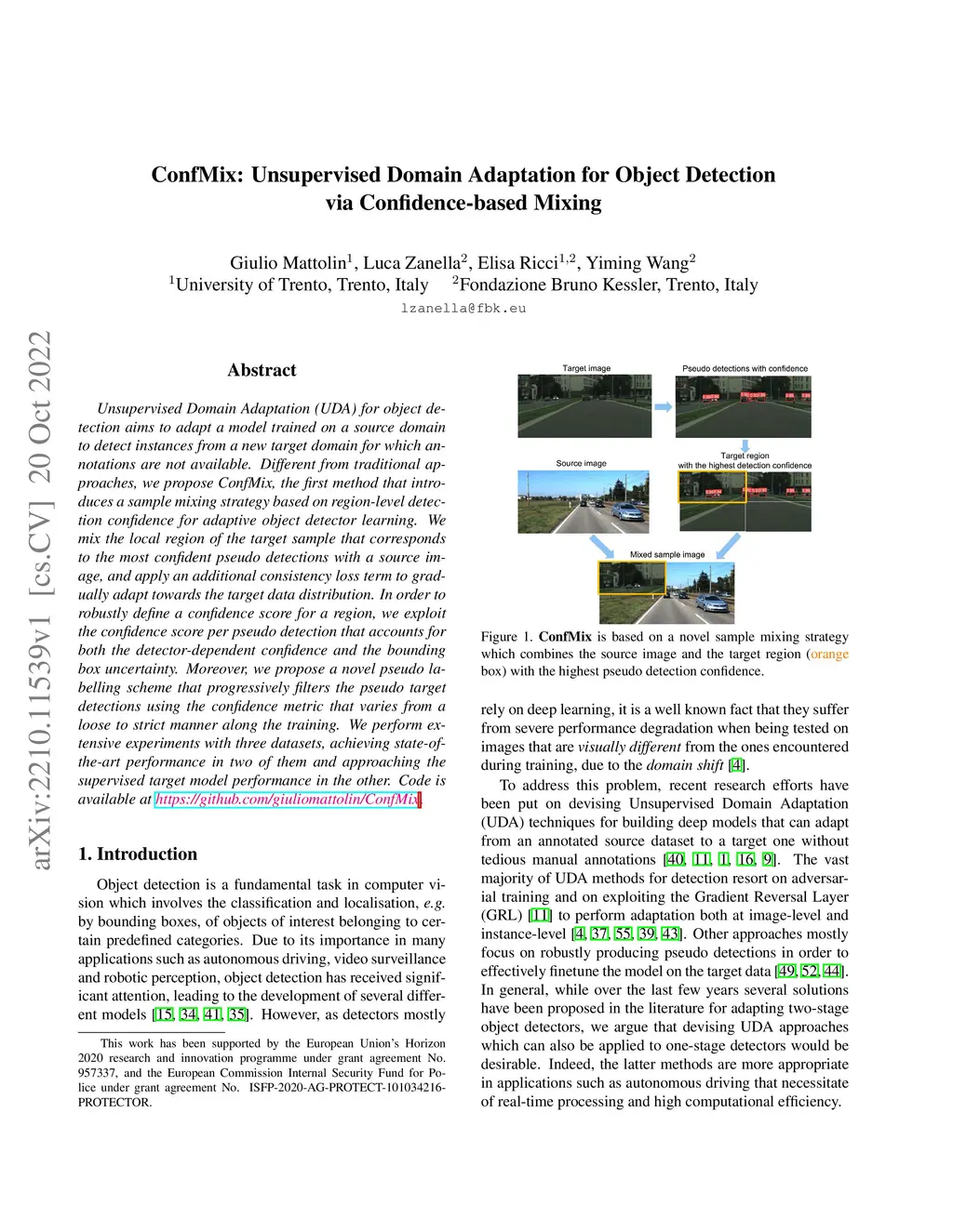 ConfMix: Unsupervised Domain Adaptation for Object Detection via