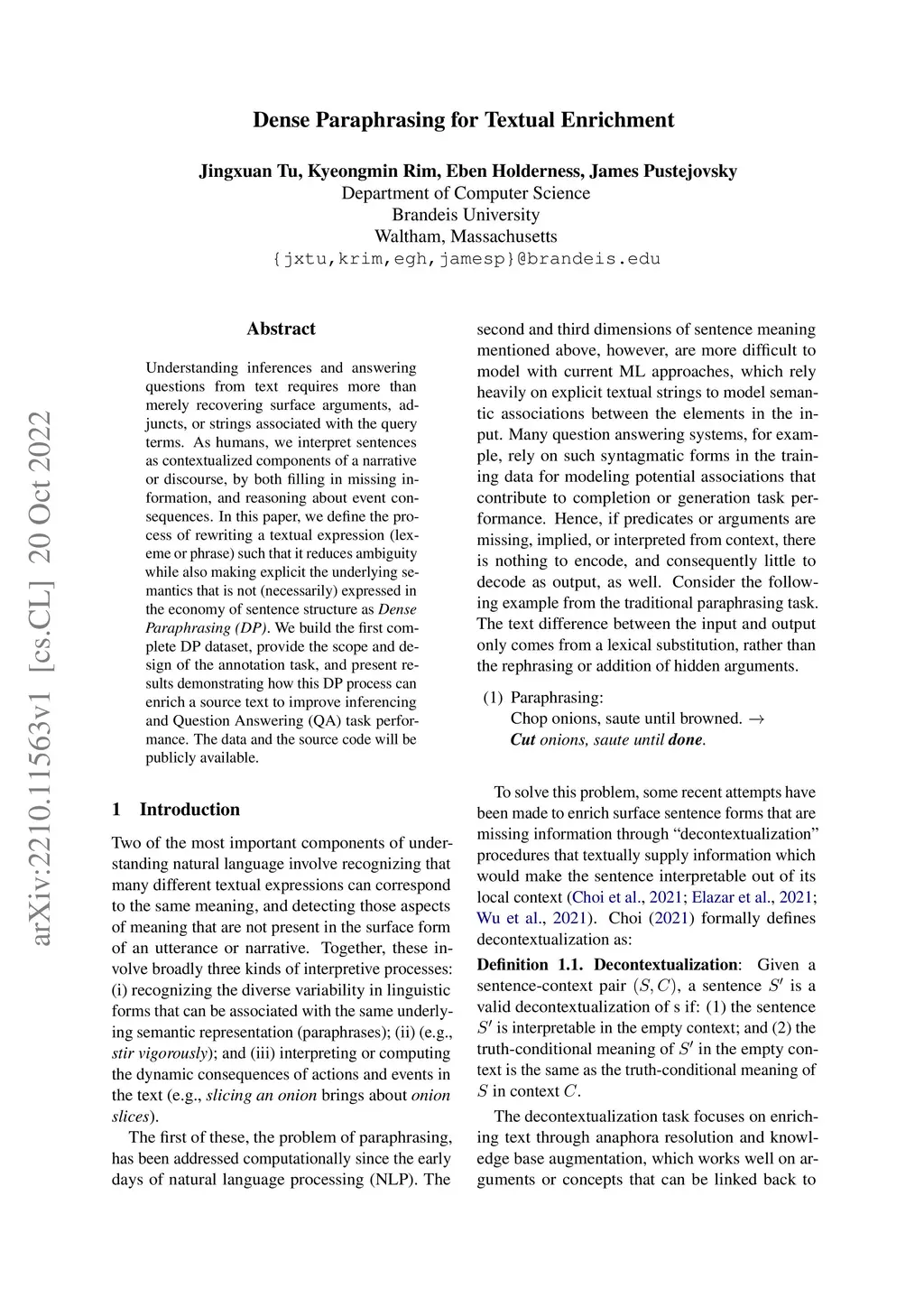 Dense Paraphrasing for Textual Enrichment