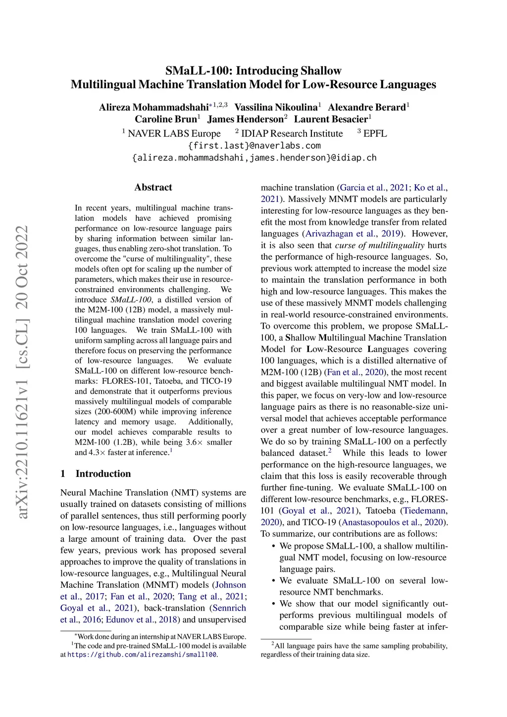 SMaLL-100: Introducing Shallow Multilingual Machine Translation Model