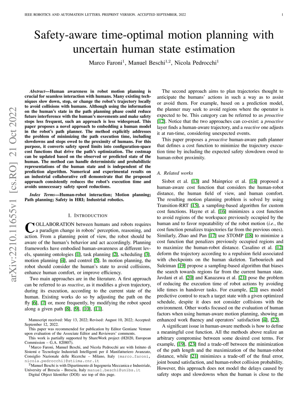 Safety-aware time-optimal motion planning with uncertain human state