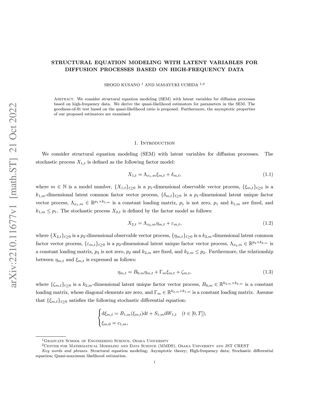 Structural equation modeling with latent variables for diffusion