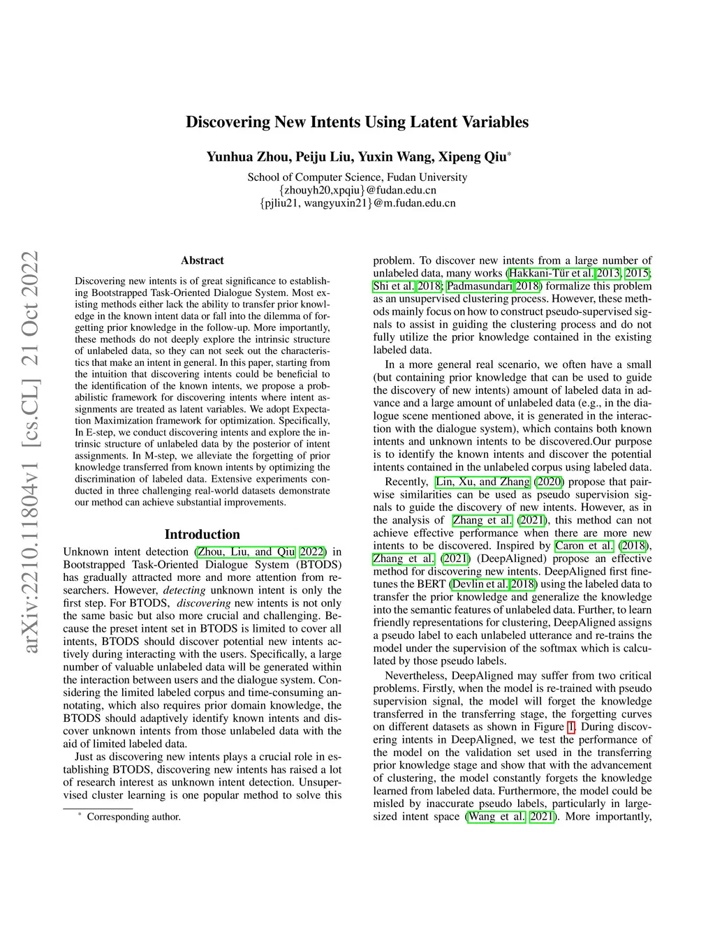 Discovering New Intents Using Latent Variables