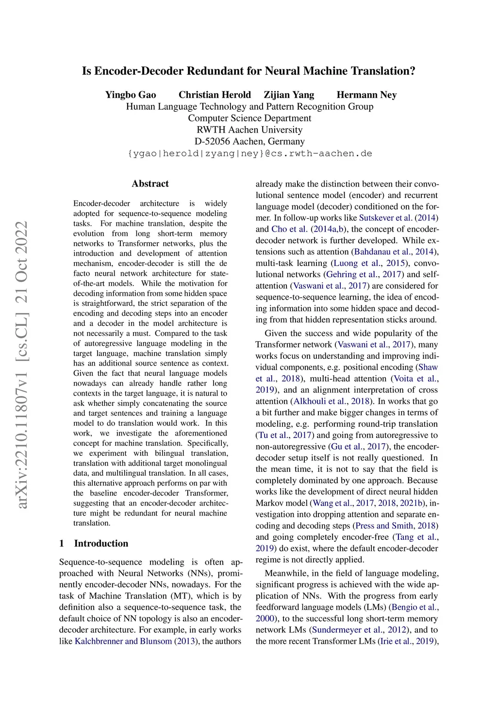 Is Encoder-Decoder Redundant for Neural Machine Translation?
