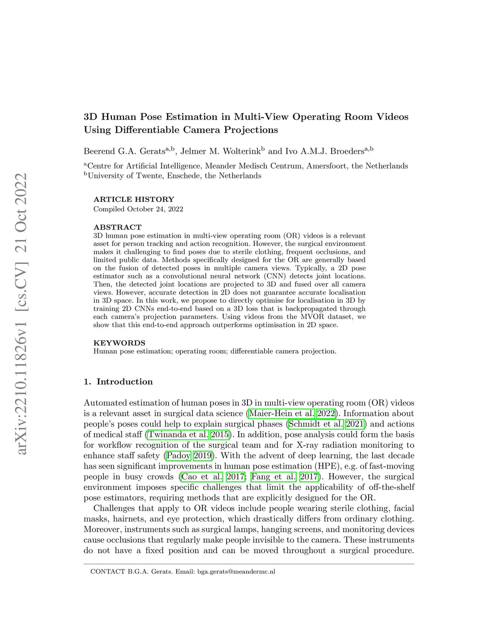 3D Human Pose Estimation in Multi-View Operating Room Videos Using