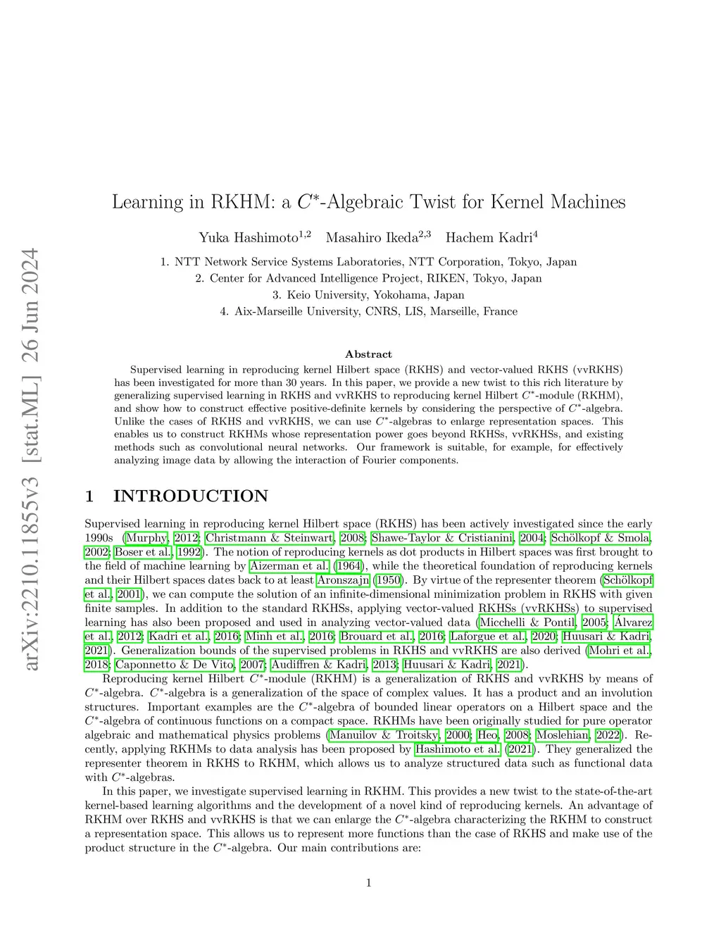 Learning in RKHM: a -Algebraic Twist for Kernel Machines