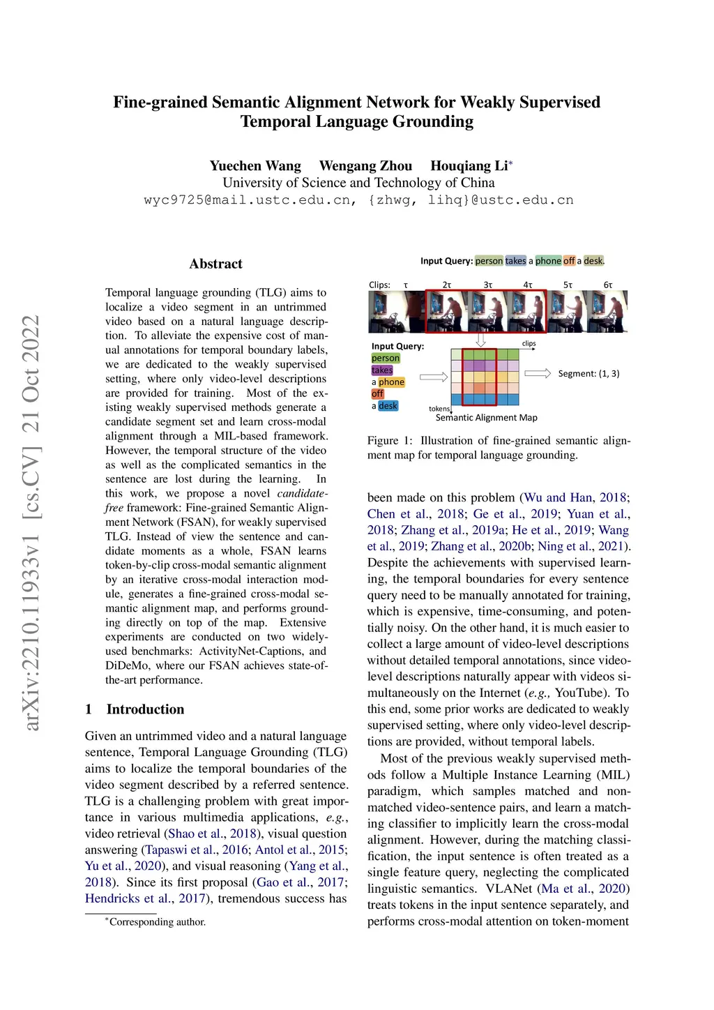 Fine-grained Semantic Alignment Network for Weakly Supervised Temporal