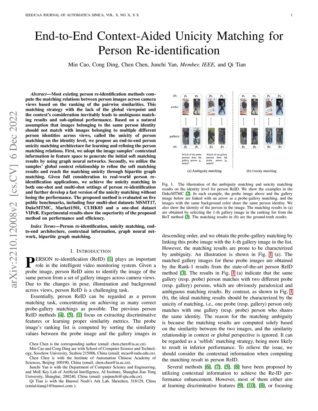 End-to-End Context-Aided Unicity Matching for Person Re-identification