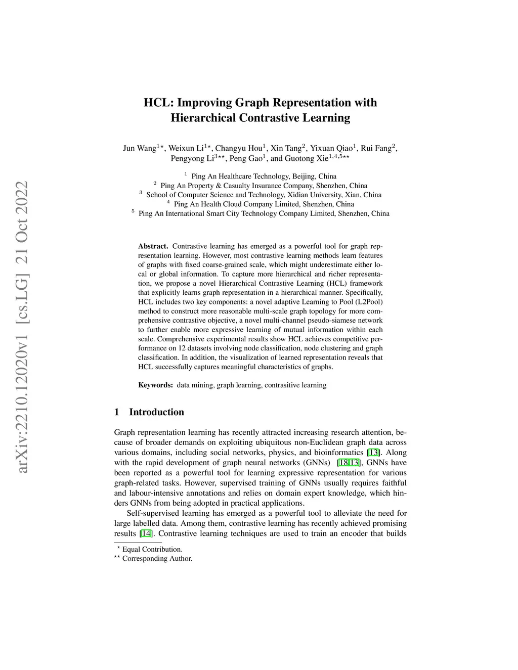 HCL: Improving Graph Representation with Hierarchical Contrastive