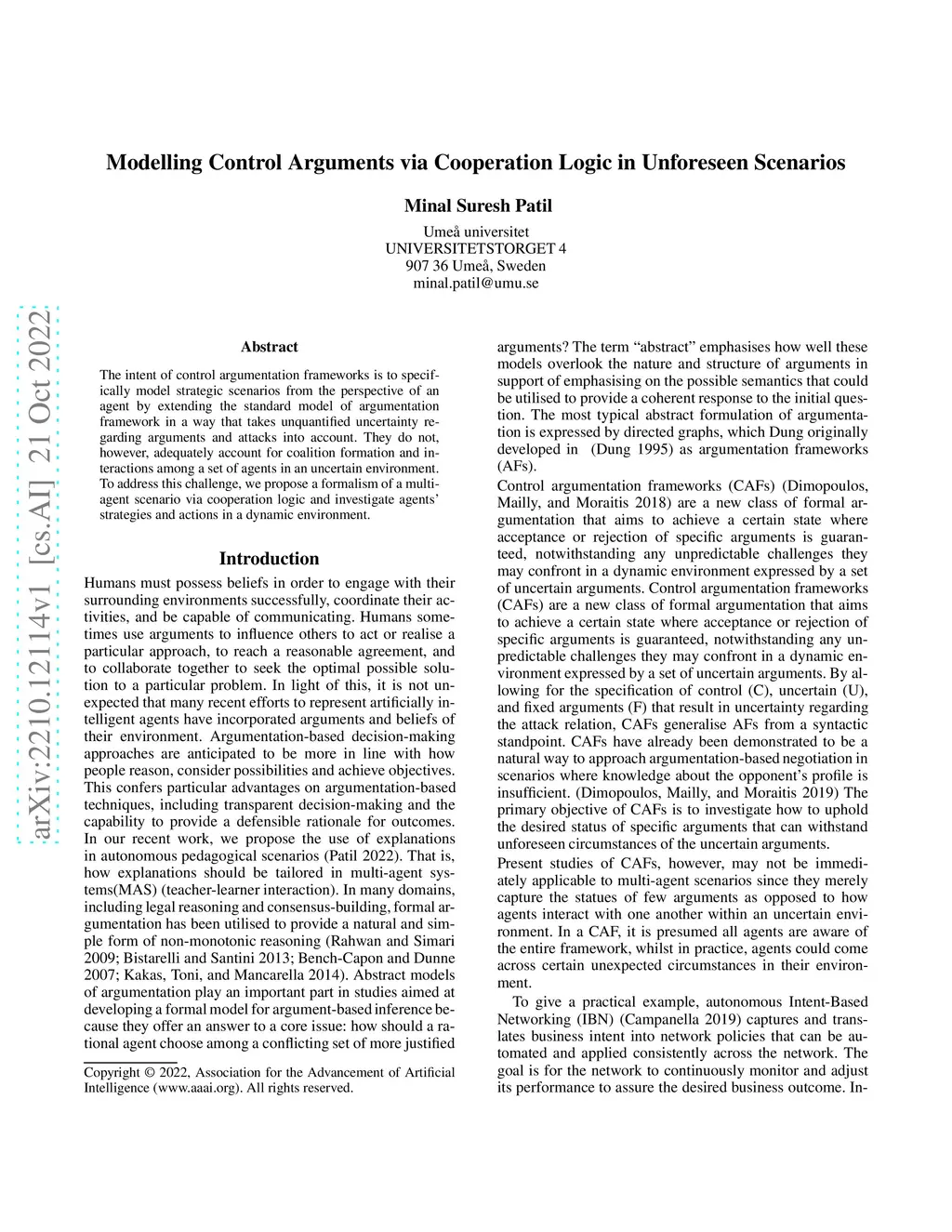 Modelling Control Arguments via Cooperation Logic in Unforeseen