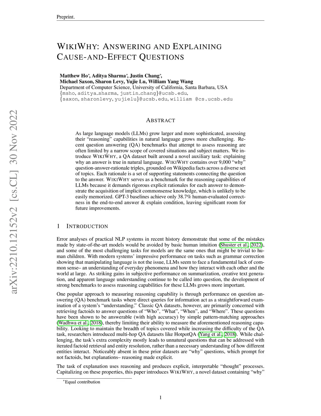 WikiWhy: Answering and Explaining Cause-and-Effect Questions