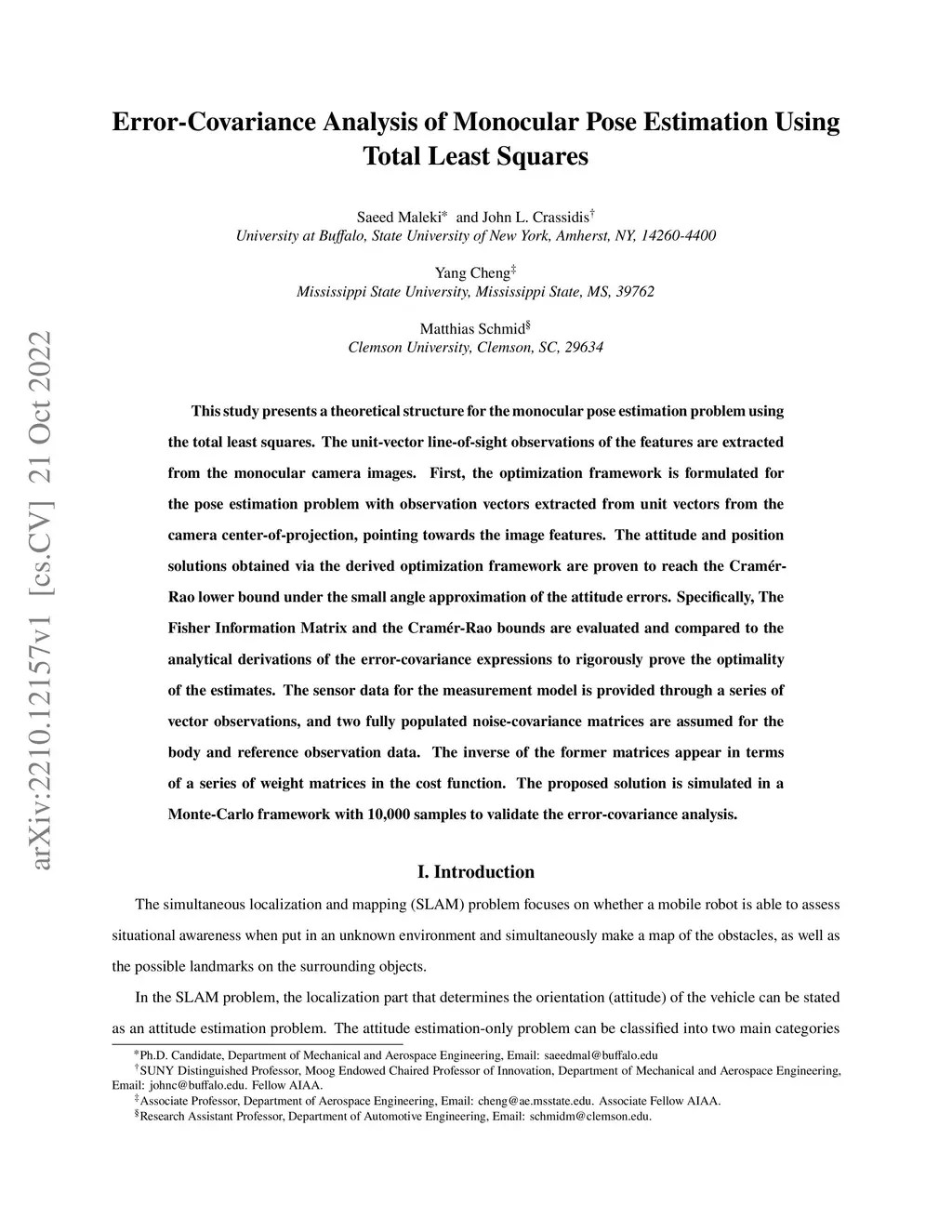 Error-Covariance Analysis of Monocular Pose Estimation Using Total Least