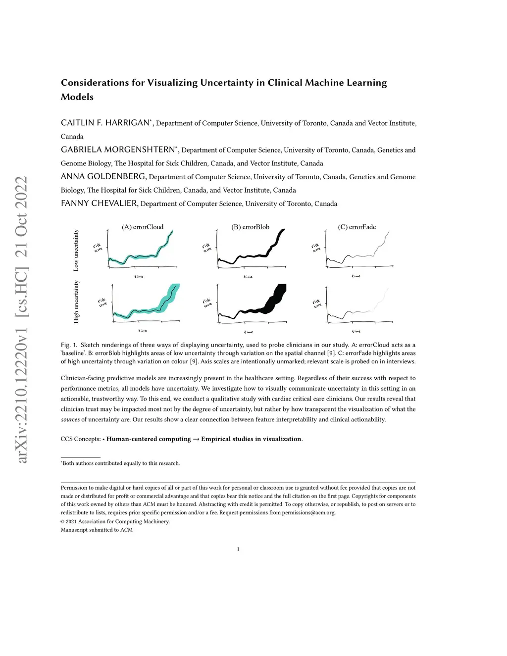 Clinician-facing predictive models are increasingly present in the healthcare setting. Regardless of their success with respect to performance metrics, all models have uncertainty. We investigate how to visually communicate uncertainty in this setting in an actionable, trustworthy way. To this end, we conduct a qualitative study with cardiac critical care clinicians. Our results reveal that clinician trust may be impacted most not by the degree of uncertainty, but rather by how transparent the visualization of what the sources of uncertainty are. Our results show a clear connection between feature interpretability and clinical actionability.