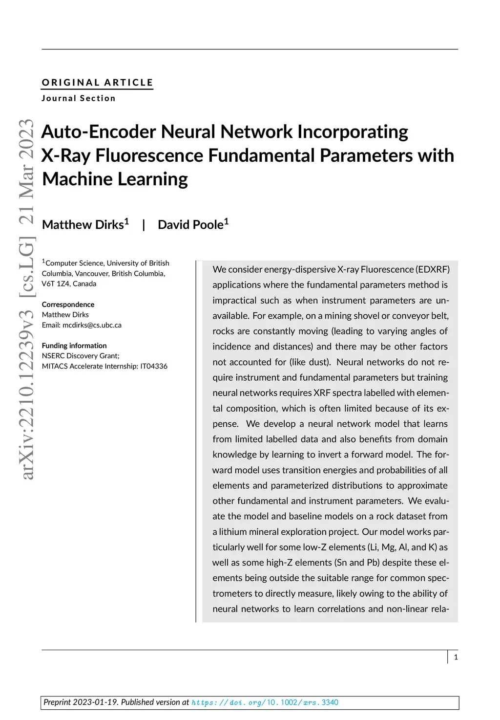 Auto-Encoder Neural Network Incorporating X-Ray Fluorescence Fundamental