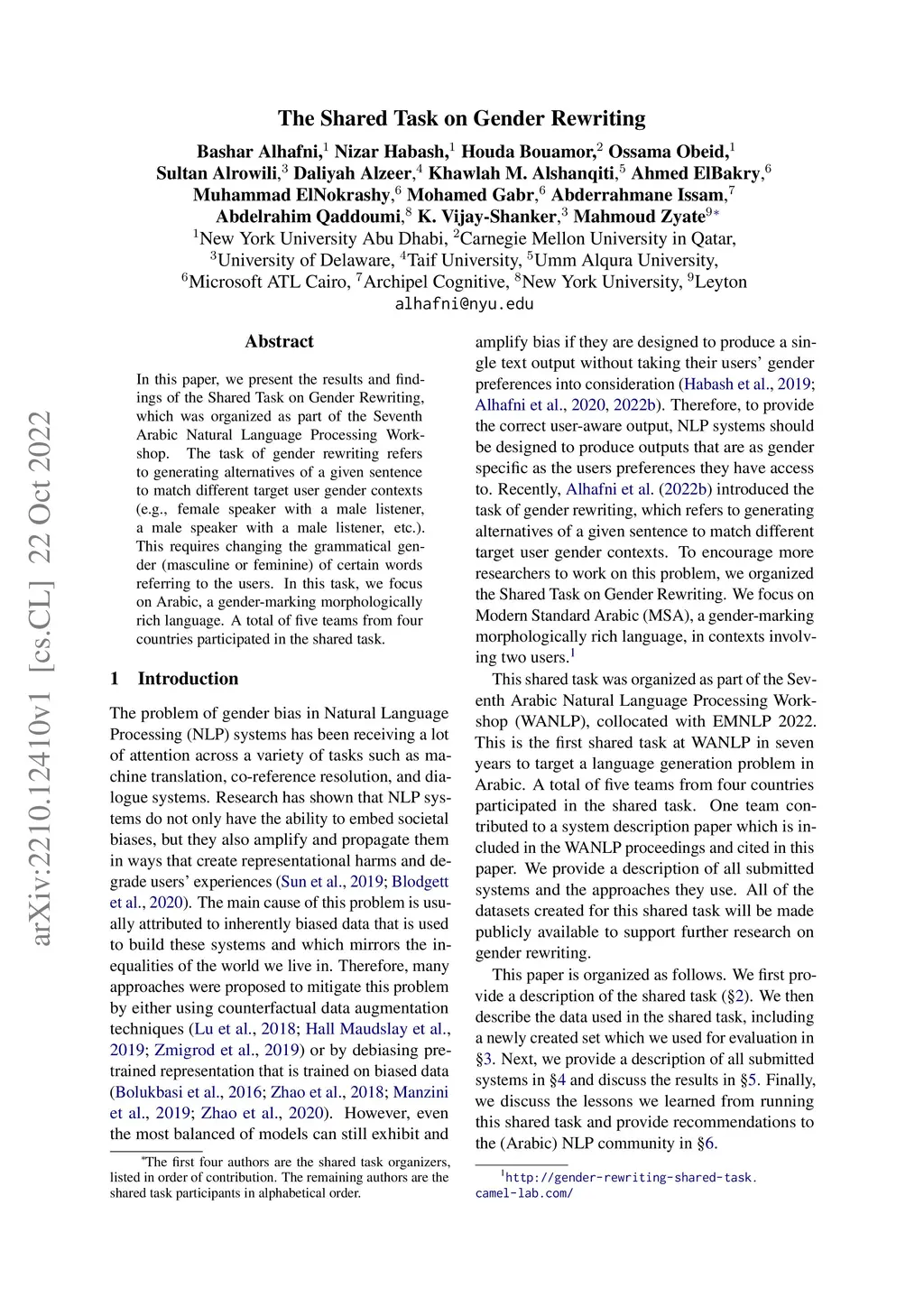 Workshop on Arabic Natural Language Processing (WANLP), 2022