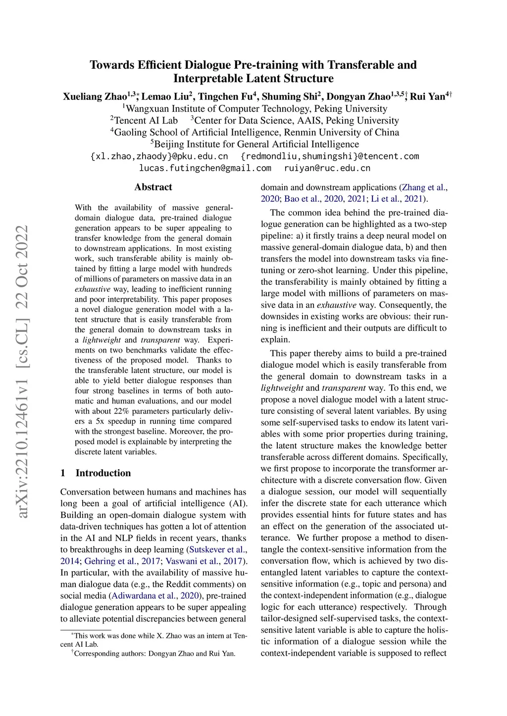 Towards Efficient Dialogue Pre-training with Transferable and