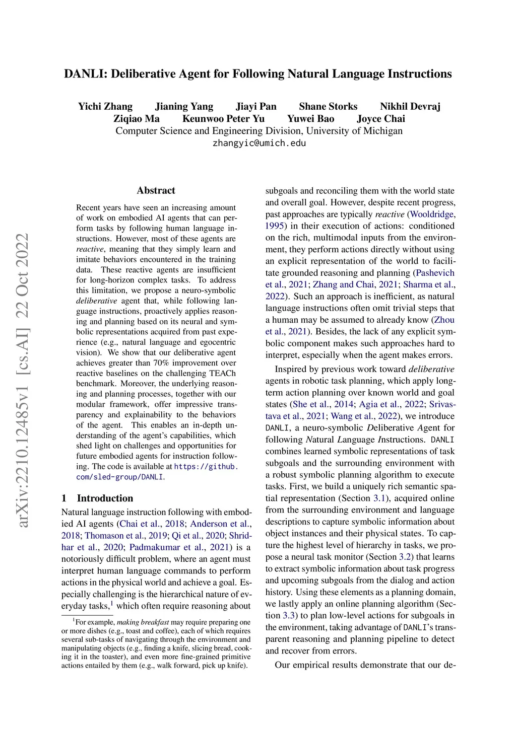 DANLI: Deliberative Agent for Following Natural Language Instructions