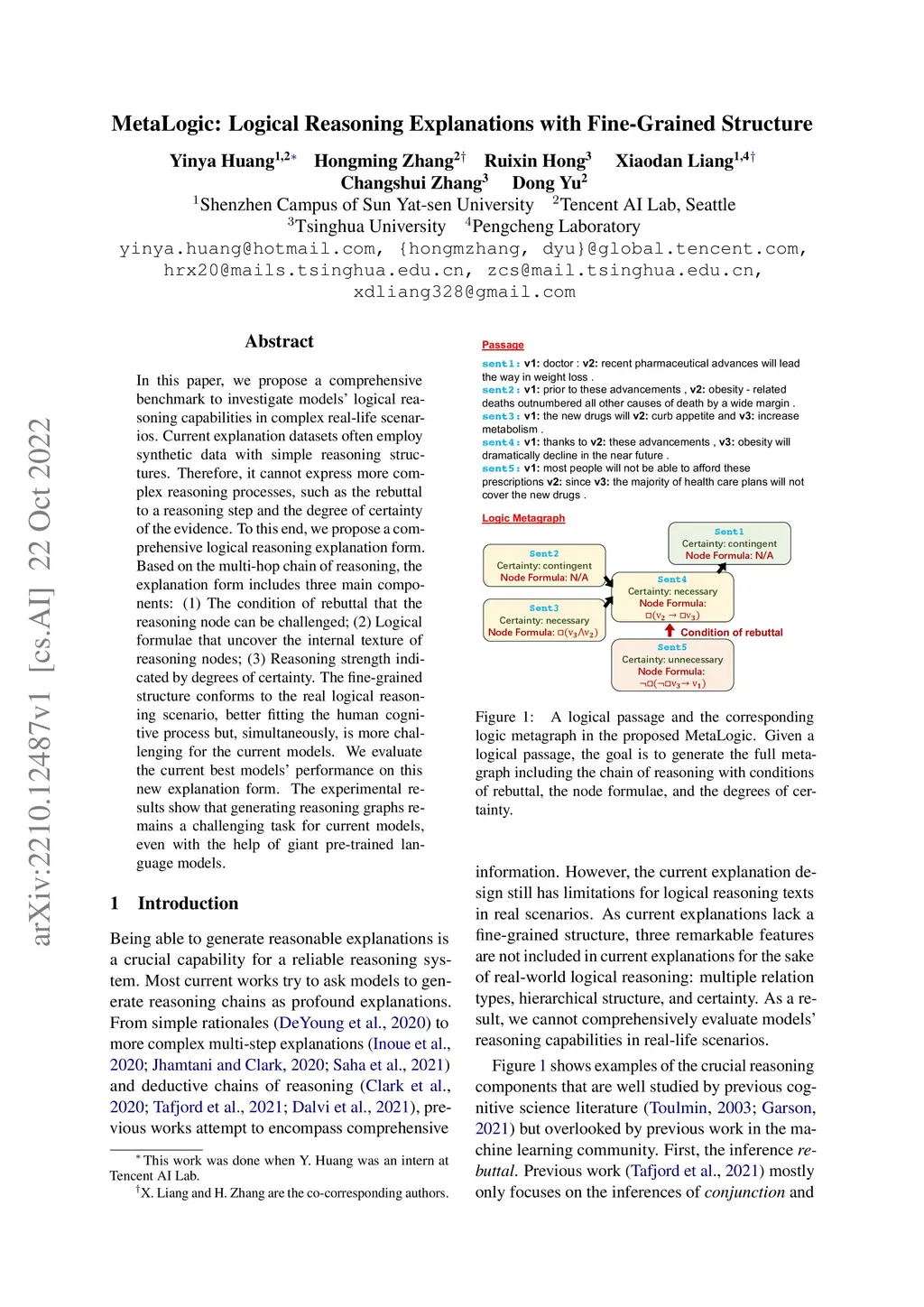 In this paper, we propose a comprehensive benchmark to investigate models' logical reasoning capabilities in complex real-life scenarios. Current explanation datasets often employ synthetic data with simple reasoning structures. Therefore, it cannot express more complex reasoning processes, such as the rebuttal to a reasoning step and the degree of certainty of the evidence. To this end, we propose a comprehensive logical reasoning explanation form. Based on the multi-hop chain of reasoning, the explanation form includes three main components: (1) The condition of rebuttal that the reasoning node can be challenged; (2) Logical formulae that uncover the internal texture of reasoning nodes; (3) Reasoning strength indicated by degrees of certainty. The fine-grained structure conforms to the real logical reasoning scenario, better fitting the human cognitive process but, simultaneously, is more challenging for the current models. We evaluate the current best models' performance on this new explanation form. The experimental results show that generating reasoning graphs remains a challenging task for current models, even with the help of giant pre-trained language models.