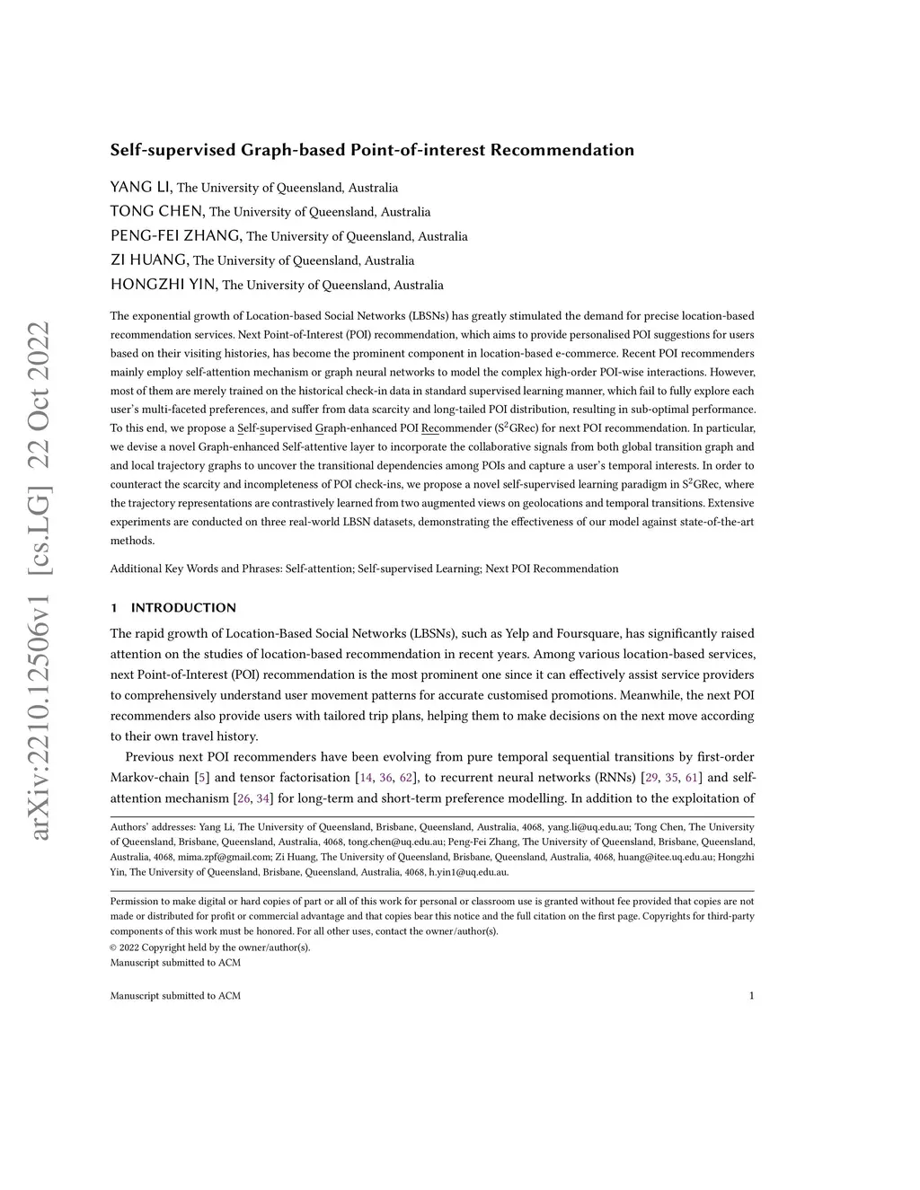 Self-supervised Graph-based Point-of-interest Recommendation