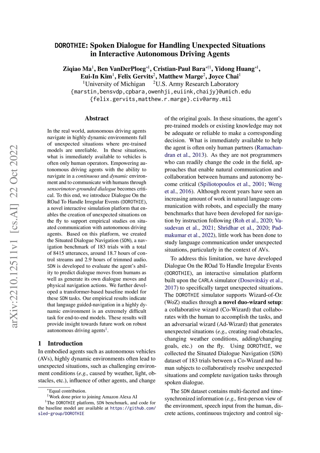 DOROTHIE: Spoken Dialogue for Handling Unexpected Situations in