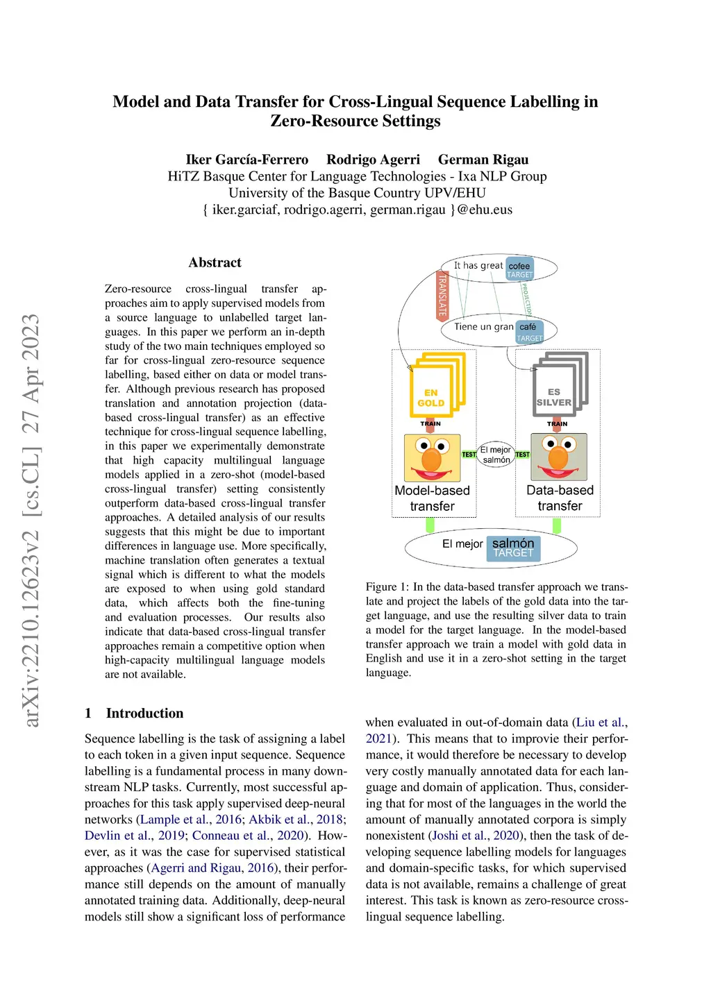 Model and Data Transfer for Cross-Lingual Sequence Labelling in