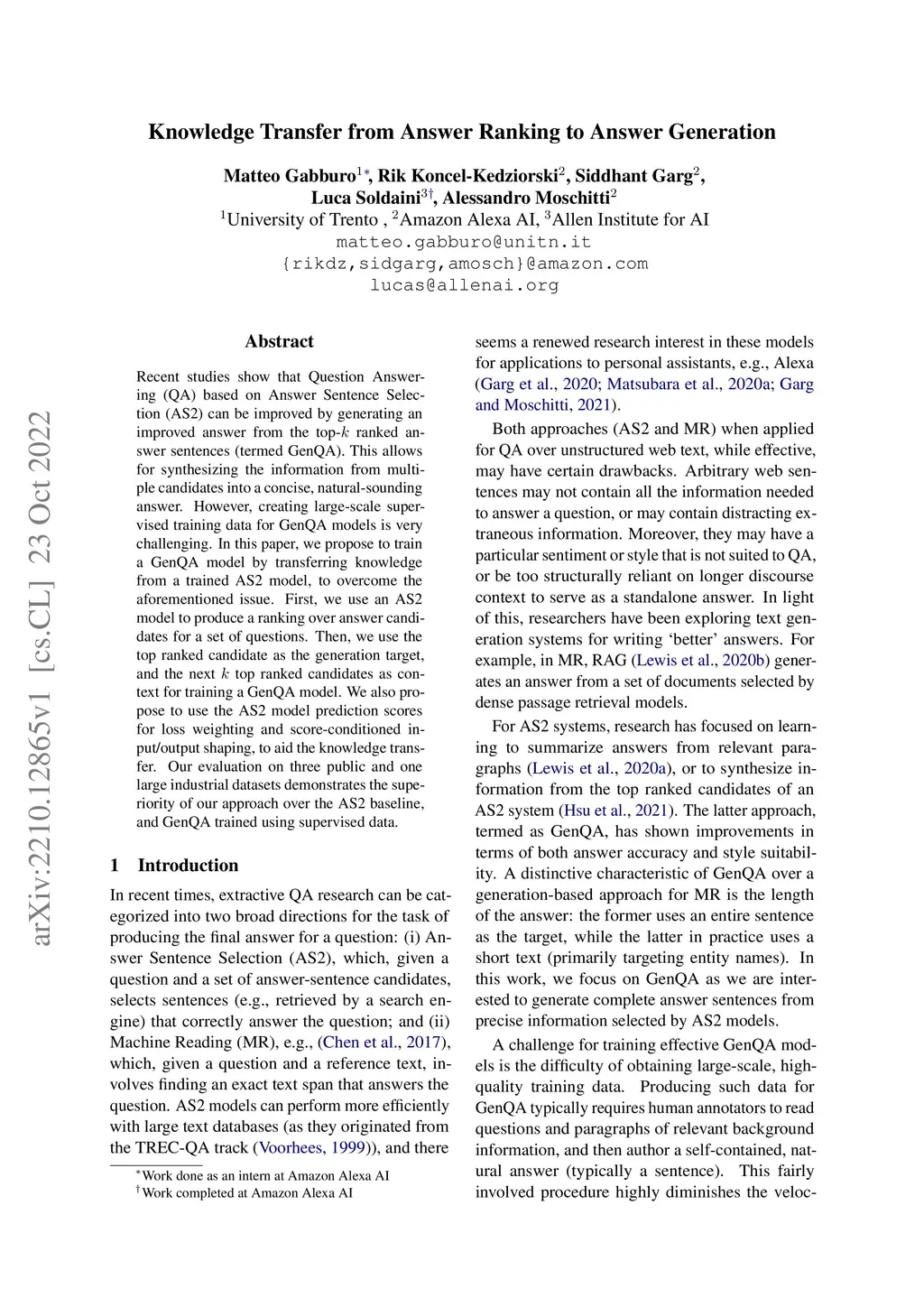 Knowledge Transfer from Answer Ranking to Answer Generation