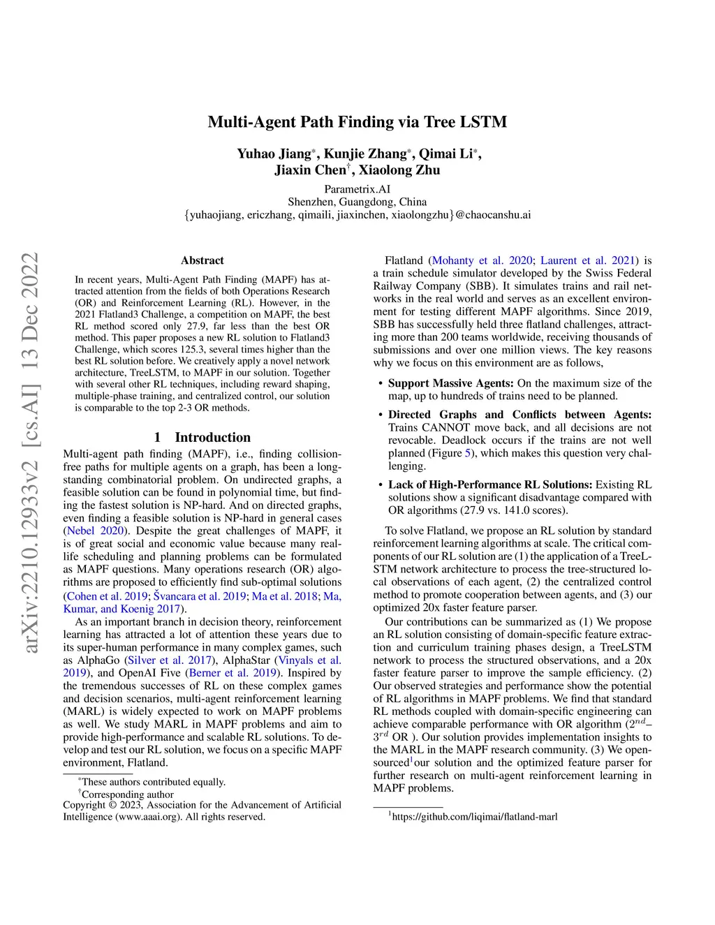 In recent years, Multi-Agent Path Finding (MAPF) has attracted attention from the fields of both Operations Research (OR) and Reinforcement Learning (RL). However, in the 2021 Flatland3 Challenge, a competition on MAPF, the best RL method scored only 27.9, far less than the best OR method. This paper proposes a new RL solution to Flatland3 Challenge, which scores 125.3, several times higher than the best RL solution before. We creatively apply a novel network architecture, TreeLSTM, to MAPF in our solution. Together with several other RL techniques, including reward shaping, multiple-phase training, and centralized control, our solution is comparable to the top 2-3 OR methods.
