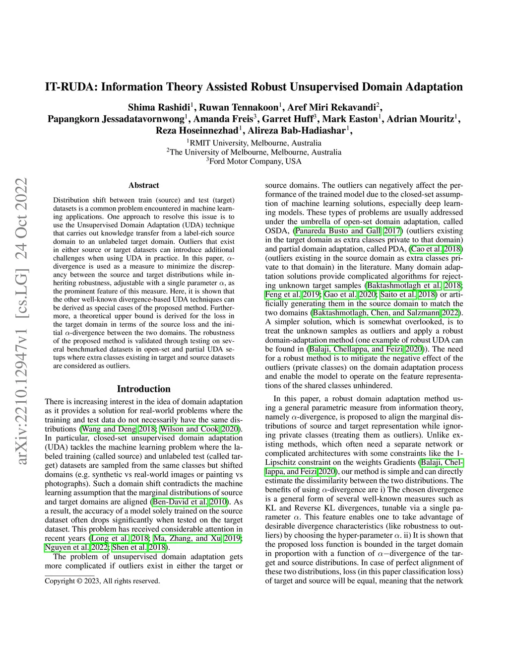 IT-RUDA: Information Theory Assisted Robust Unsupervised Domain