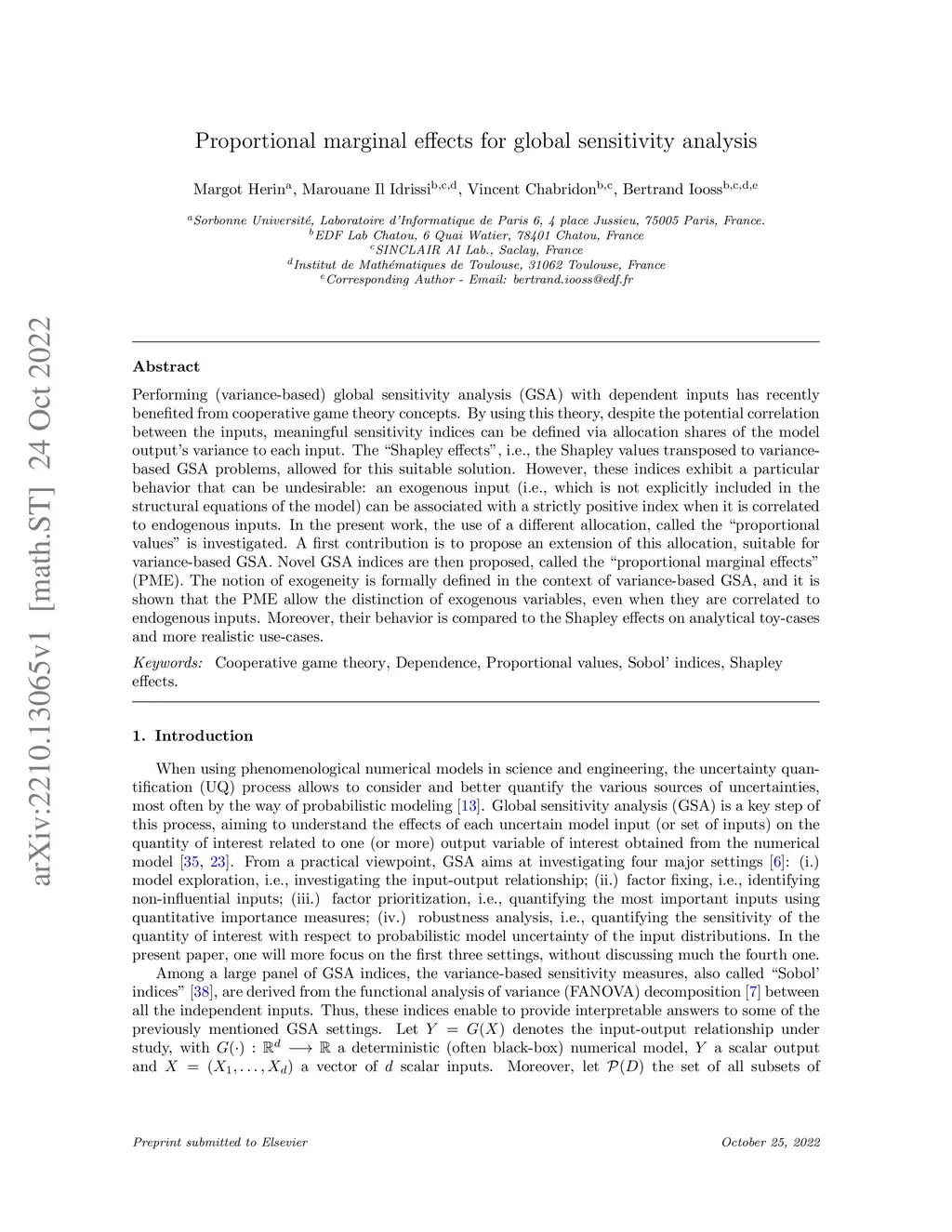 Performing (variance-based) global sensitivity analysis (GSA) with dependent inputs has recently benefited from cooperative game theory concepts.By using this theory, despite the potential correlation between the inputs, meaningful sensitivity indices can be defined via allocation shares of the model output's variance to each input. The ``Shapley effects'', i.e., the Shapley values transposed to variance-based GSA problems, allowed for this suitable solution. However, these indices exhibit a particular behavior that can be undesirable: an exogenous input (i.e., which is not explicitly included in the structural equations of the model) can be associated with a strictly positive index when it is correlated to endogenous inputs. In the present work, the use of a different allocation, called the ``proportional values'' is investigated. A first contribution is to propose an extension of this allocation, suitable for variance-based GSA. Novel GSA indices are then proposed, called the ``proportional marginal effects'' (PME). The notion of exogeneity is formally defined in the context of variance-based GSA, and it is shown that the PME allow the distinction of exogenous variables, even when they are correlated to endogenous inputs. Moreover, their behavior is compared to the Shapley effects on analytical toy-cases and more realistic use-cases.
