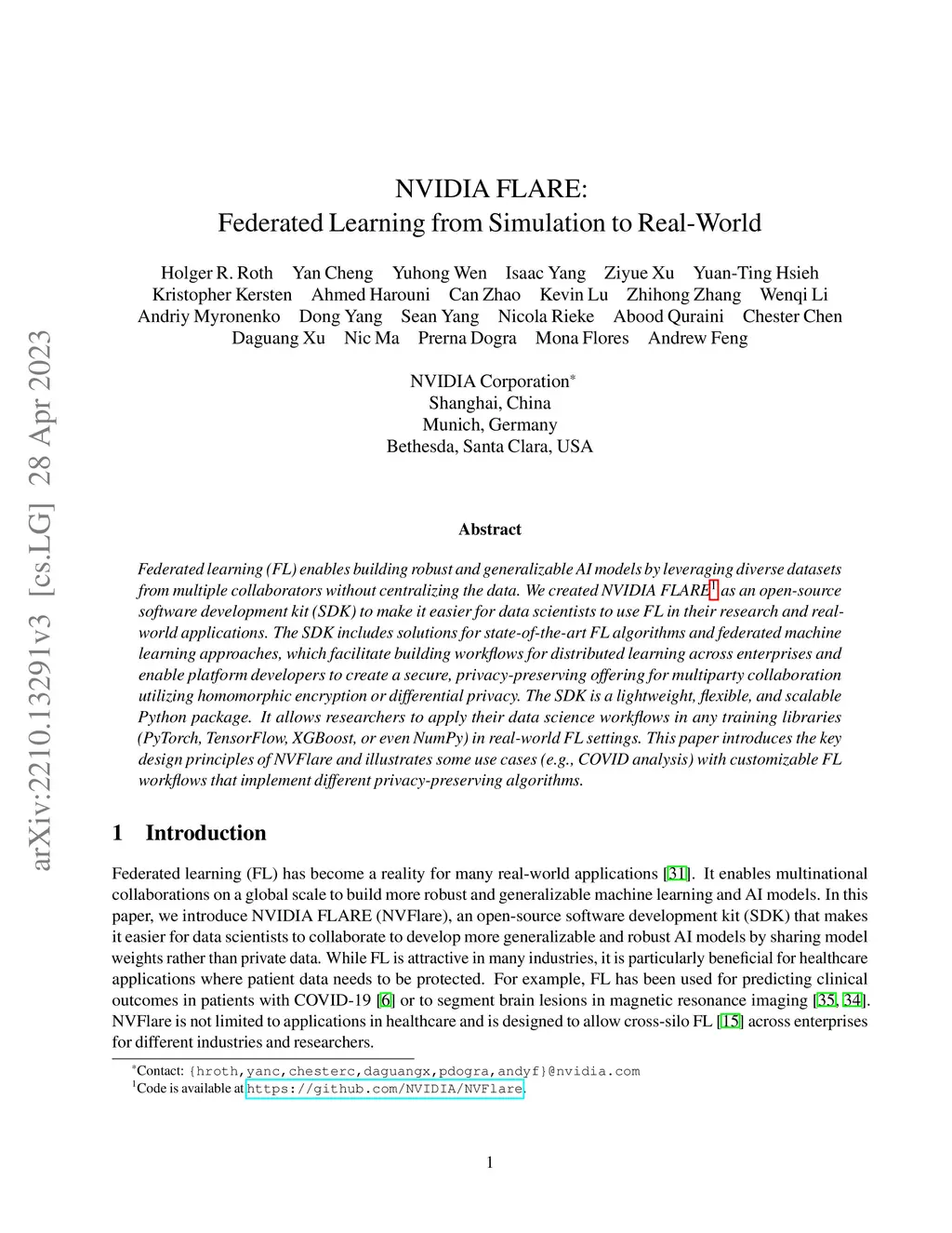 NVIDIA FLARE: Federated Learning from Simulation to Real-World