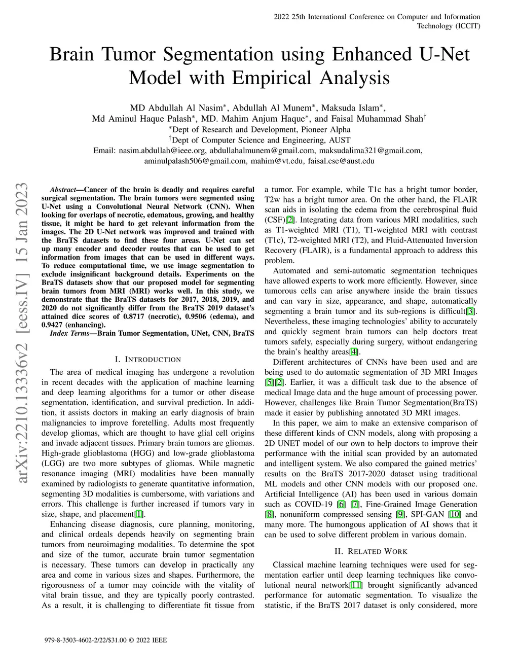 Brain Tumor Segmentation using Enhanced U-Net Model with Empirical