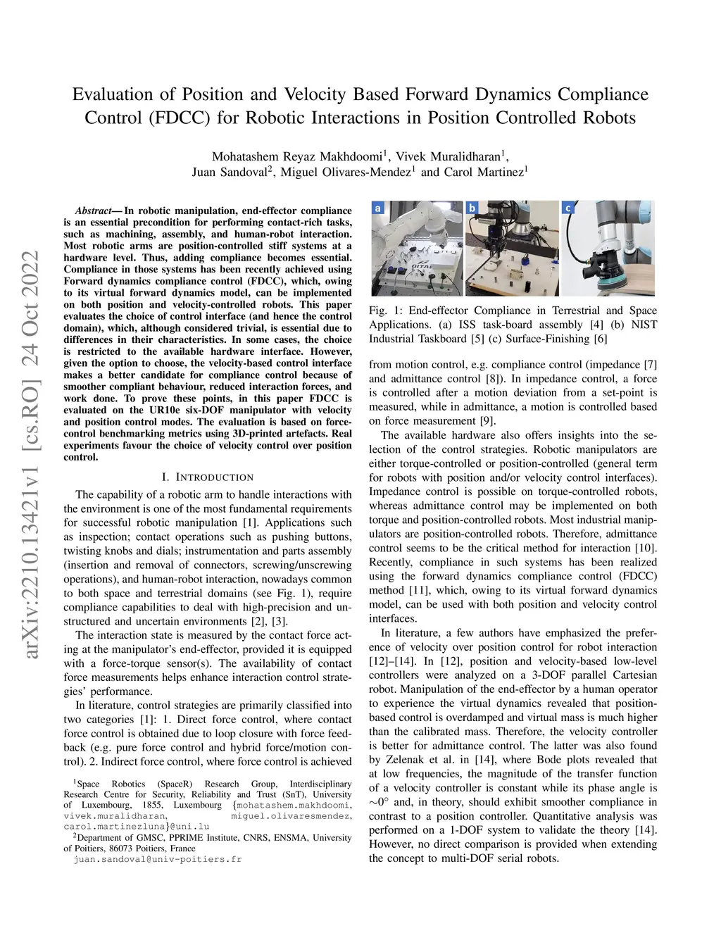 Control (FDCC) for Robotic Interactions in Position Controlled Robots