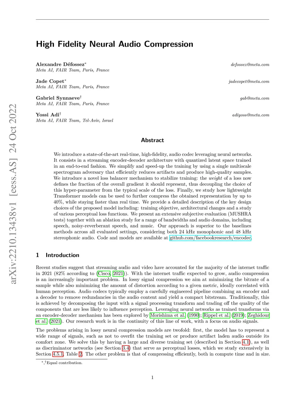 High Fidelity Neural Audio Compression