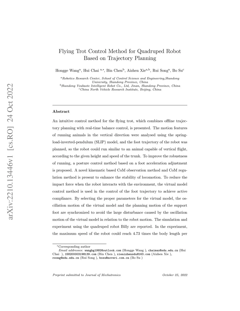 Flying Trot Control Method for Quadruped Robot Based on Trajectory