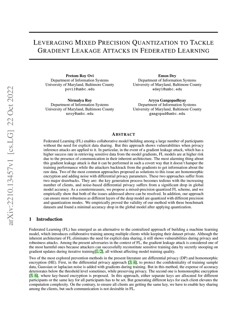 Mixed Precision Quantization to Tackle Gradient Leakage Attacks in