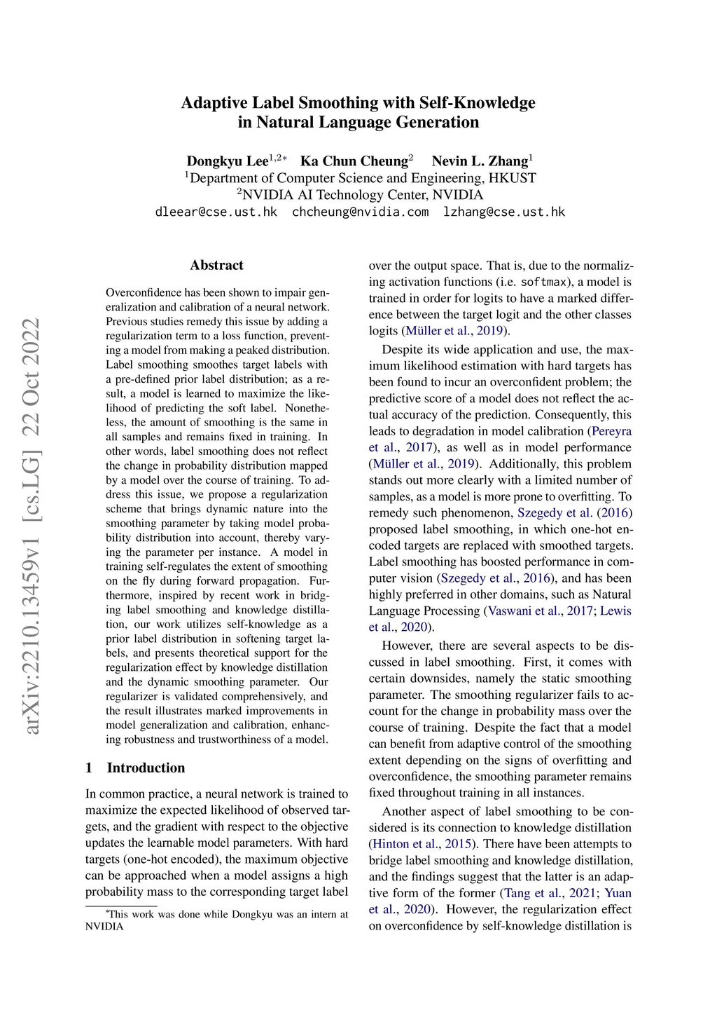 Adaptive Label Smoothing with Self-Knowledge in Natural Language