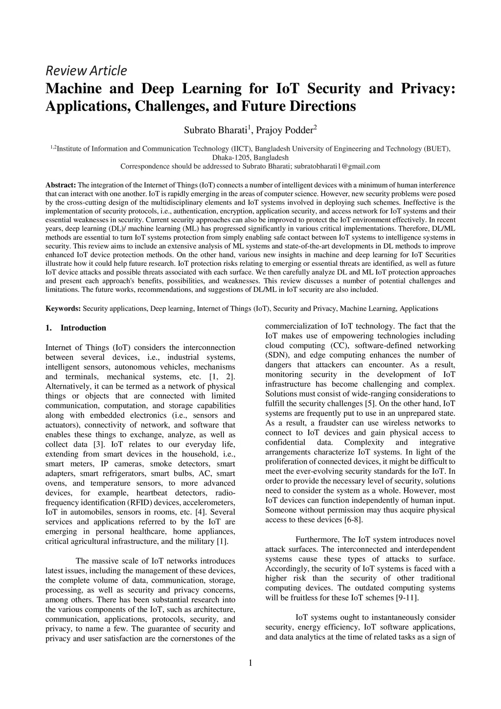 Machine and Deep Learning for IoT Security and Privacy: Applications,