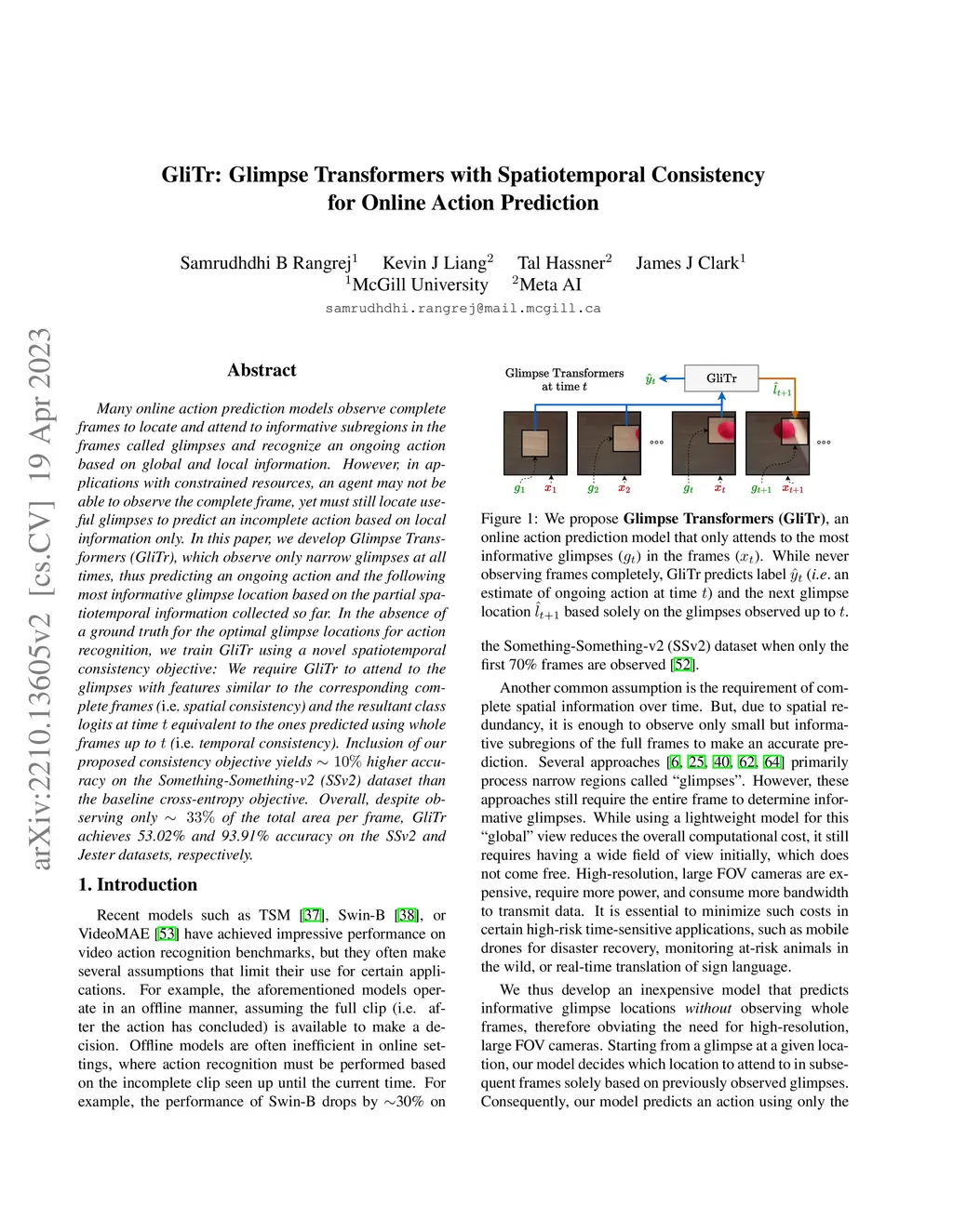 GliTr: Glimpse Transformers with Spatiotemporal Consistency for Online