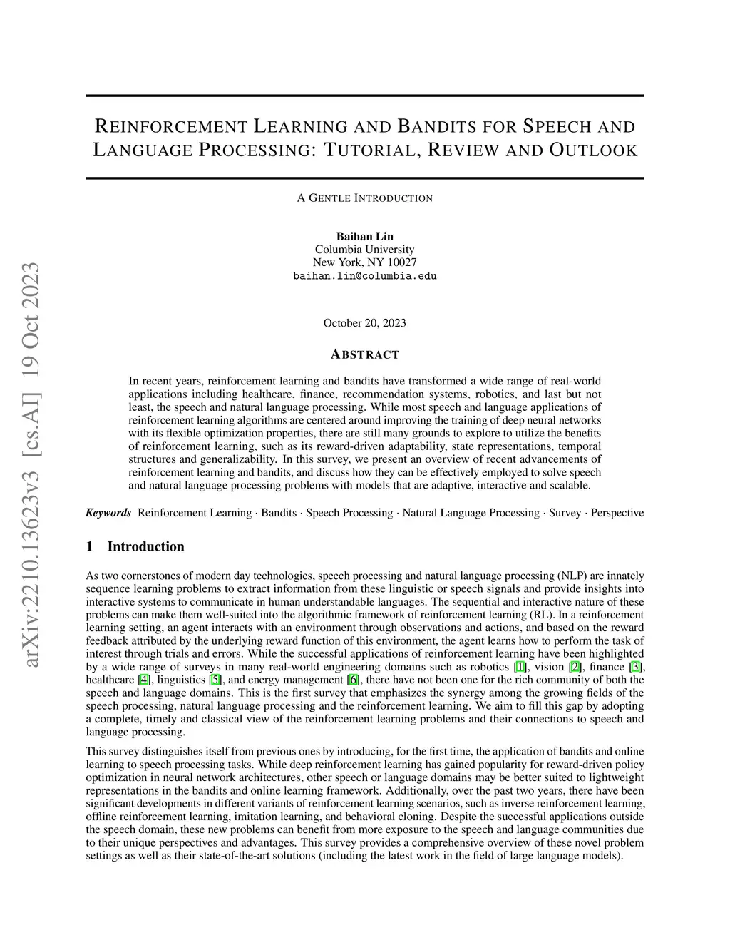 Reinforcement Learning and Bandits for Speech and Language Processing: