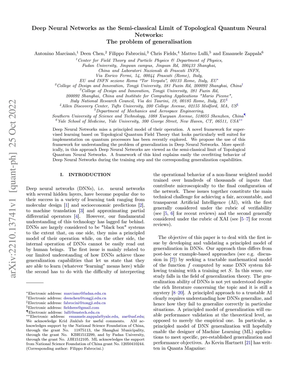 Deep Neural Networks miss a principled model of their operation. A novel framework for supervised learning based on Topological Quantum Field Theory that looks particularly well suited for implementation on quantum processors has been recently explored. We propose the use of this framework for understanding the problem of generalization in Deep Neural Networks. More specifically, in this approach Deep Neural Networks are viewed as the semi-classical limit of Topological Quantum Neural Networks. A framework of this kind explains easily the overfitting behavior of Deep Neural Networks during the training step and the corresponding generalization capabilities.