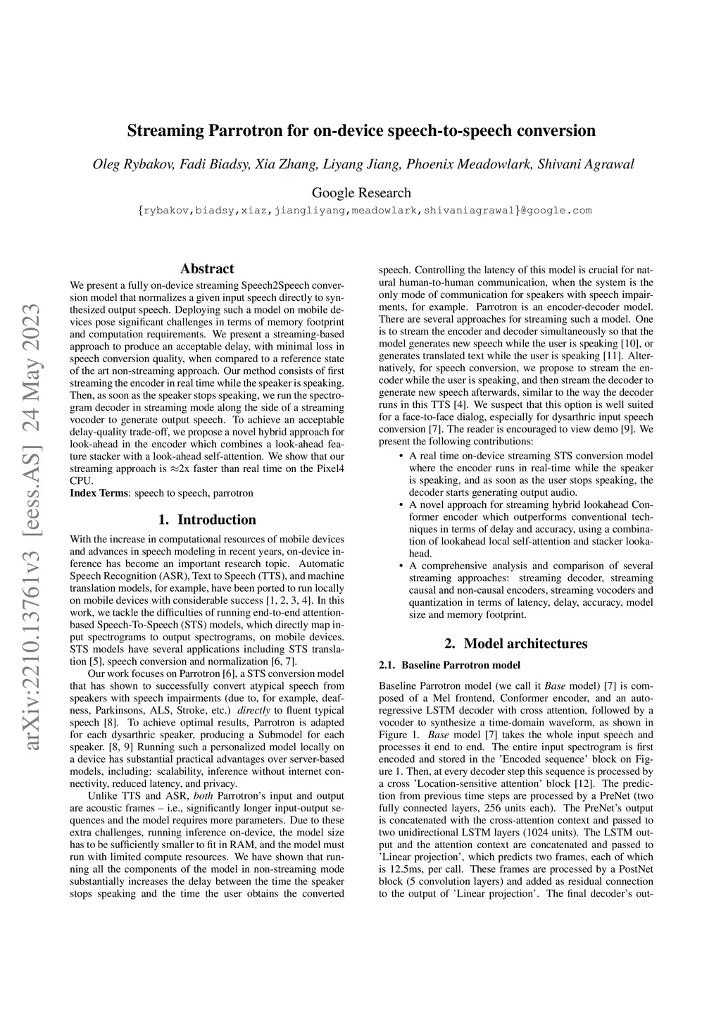 Streaming Parrotron for on-device speech-to-speech conversion
