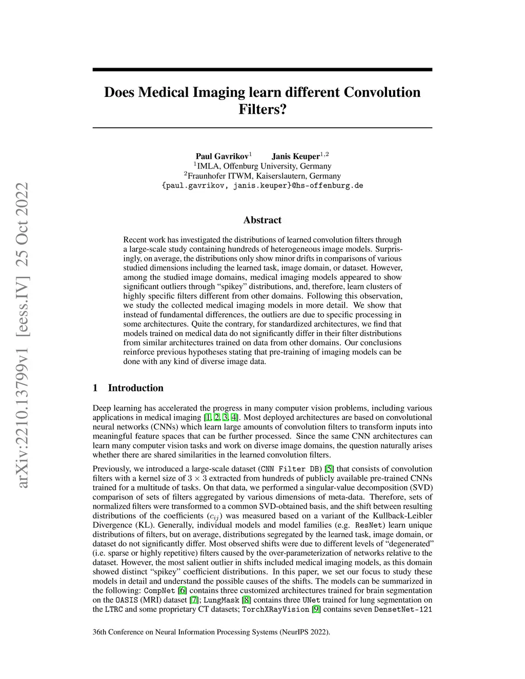 Does Medical Imaging learn different Convolution Filters?