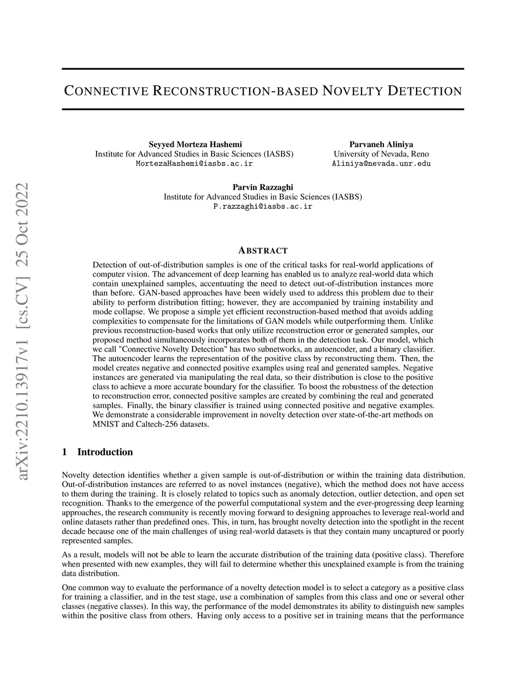 Connective Reconstruction-based Novelty Detection