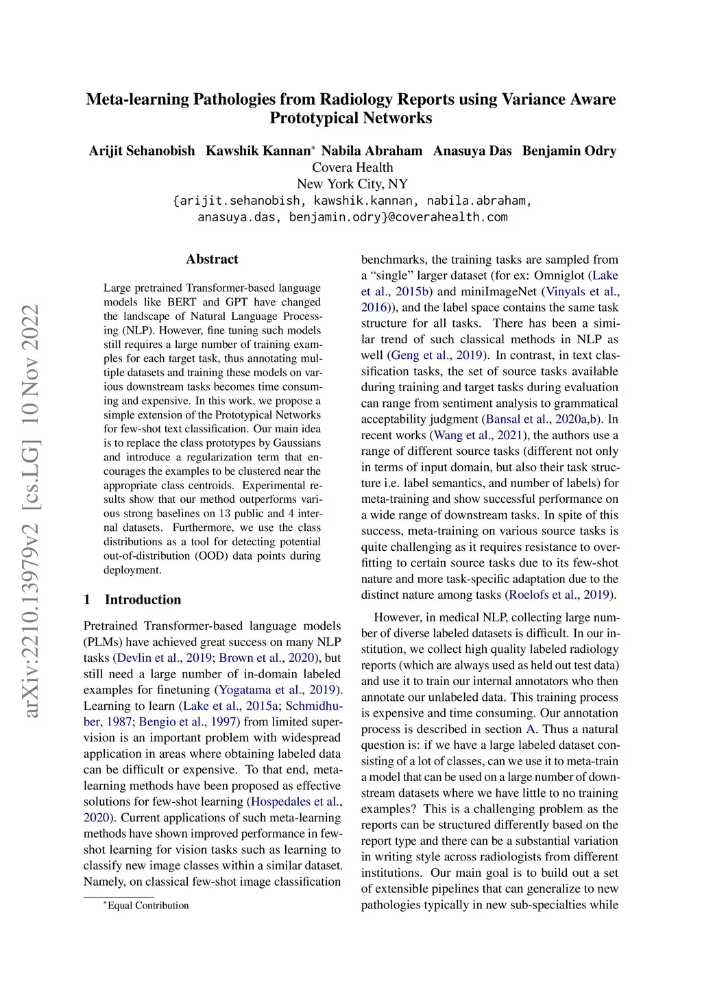Meta-learning Pathologies from Radiology Reports using Variance Aware