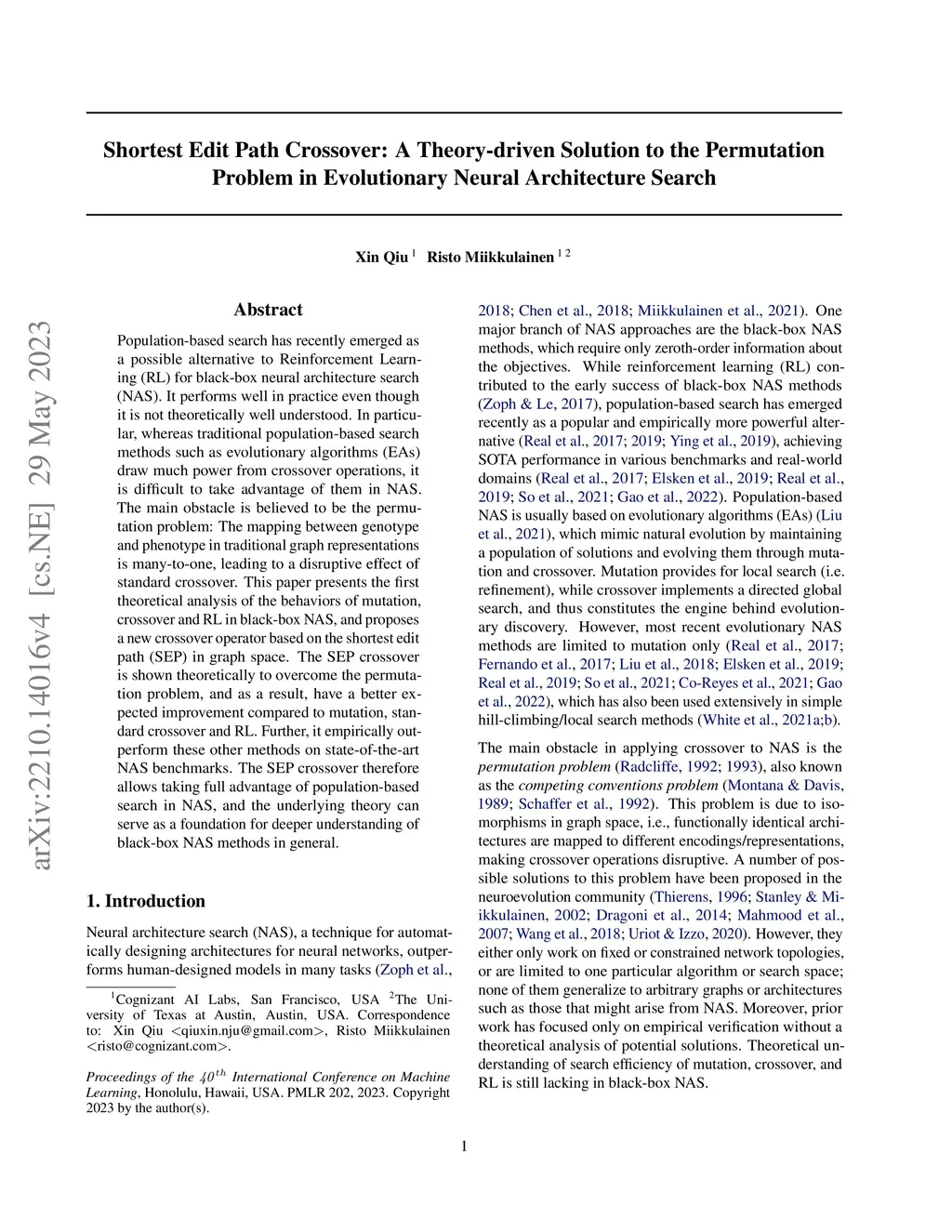 Population-based search has recently emerged as a possible alternative to Reinforcement Learning (RL) for black-box neural architecture search (NAS). It performs well in practice even though it is not theoretically well understood. In particular, whereas traditional population-based search methods such as evolutionary algorithms (EAs) draw much power from crossover operations, it is difficult to take advantage of them in NAS. The main obstacle is believed to be the permutation problem: The mapping between genotype and phenotype in traditional graph representations is many-to-one, leading to a disruptive effect of standard crossover. This paper presents the first theoretical analysis of the behaviors of mutation, crossover and RL in black-box NAS, and proposes a new crossover operator based on the shortest edit path (SEP) in graph space. The SEP crossover is shown theoretically to overcome the permutation problem, and as a result, have a better expected improvement compared to mutation, standard crossover and RL. Further, it empirically outperform these other methods on state-of-the-art NAS benchmarks. The SEP crossover therefore allows taking full advantage of population-based search in NAS, and the underlying theory can serve as a foundation for deeper understanding of black-box NAS methods in general.