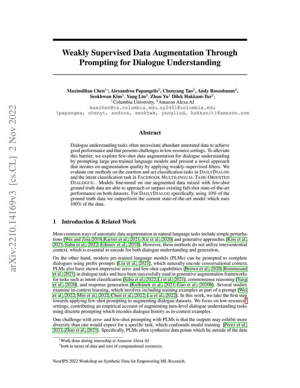 Weakly Supervised Data Augmentation Through Prompting for Dialogue