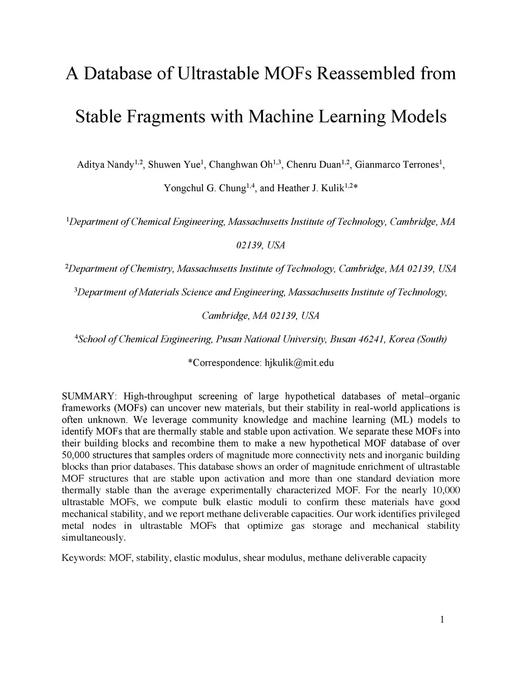 High-throughput screening of large hypothetical databases of metal-organic frameworks (MOFs) can uncover new materials, but their stability in real-world applications is often unknown. We leverage community knowledge and machine learning (ML) models to identify MOFs that are thermally stable and stable upon activation. We separate these MOFs into their building blocks and recombine them to make a new hypothetical MOF database of over 50,000 structures that samples orders of magnitude more connectivity nets and inorganic building blocks than prior databases. This database shows an order of magnitude enrichment of ultrastable MOF structures that are stable upon activation and more than one standard deviation more thermally stable than the average experimentally characterized MOF. For the nearly 10,000 ultrastable MOFs, we compute bulk elastic moduli to confirm these materials have good mechanical stability, and we report methane deliverable capacities. Our work identifies privileged metal nodes in ultrastable MOFs that optimize gas storage and mechanical stability simultaneously.