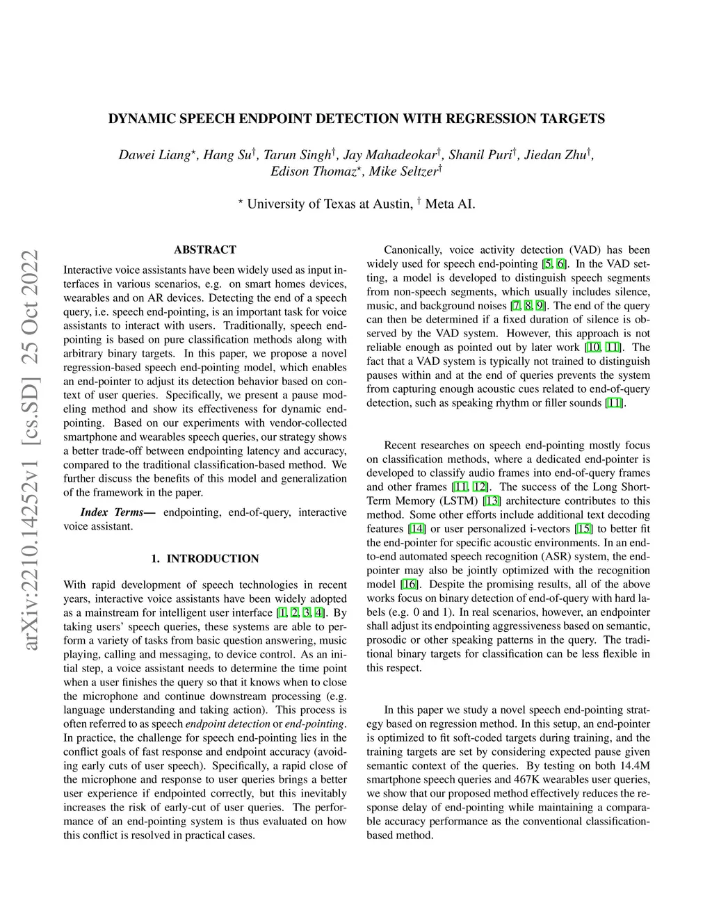 Interactive voice assistants have been widely used as input interfaces in various scenarios, e.g. on smart homes devices, wearables and on AR devices. Detecting the end of a speech query, i.e. speech end-pointing, is an important task for voice assistants to interact with users. Traditionally, speech end-pointing is based on pure classification methods along with arbitrary binary targets. In this paper, we propose a novel regression-based speech end-pointing model, which enables an end-pointer to adjust its detection behavior based on context of user queries. Specifically, we present a pause modeling method and show its effectiveness for dynamic end-pointing. Based on our experiments with vendor-collected smartphone and wearables speech queries, our strategy shows a better trade-off between endpointing latency and accuracy, compared to the traditional classification-based method. We further discuss the benefits of this model and generalization of the framework in the paper.
