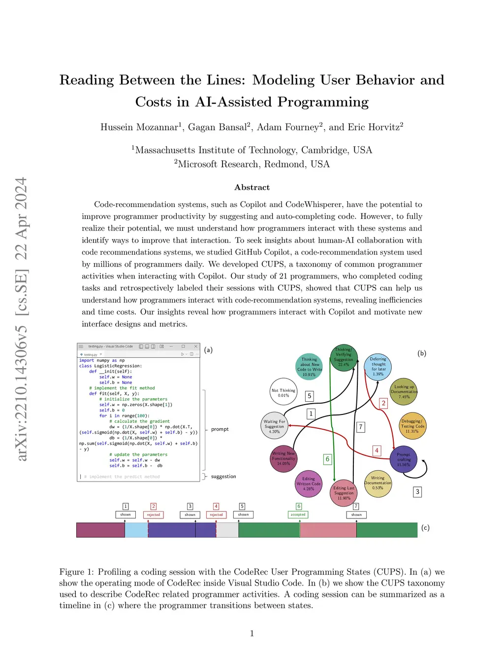 Code-recommendation systems, such as Copilot and CodeWhisperer, have the potential to improve programmer productivity by suggesting and auto-completing code. However, to fully realize their potential, we must understand how programmers interact with these systems and identify ways to improve that interaction. To make progress, we studied GitHub Copilot, a code-recommendation system used by millions of programmers daily. We developed CUPS, a taxonomy of common programmer activities when interacting with Copilot. Our study of 21 programmers, who completed coding tasks and retrospectively labeled their sessions with CUPS, showed that CUPS can help us understand how programmers interact with code-recommendation systems, revealing inefficiencies and time costs. Our insights reveal how programmers interact with Copilot and motivate new interface designs and metrics.