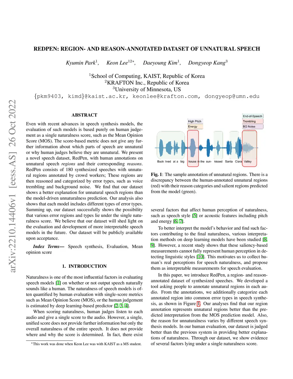 Even with recent advances in speech synthesis models, the evaluation of such models is based purely on human judgement as a single naturalness score, such as the Mean Opinion Score (MOS). The score-based metric does not give any further information about which parts of speech are unnatural or why human judges believe they are unnatural. We present a novel speech dataset, RedPen, with human annotations on unnatural speech regions and their corresponding reasons. RedPen consists of 180 synthesized speeches with unnatural regions annotated by crowd workers; These regions are then reasoned and categorized by error types, such as voice trembling and background noise. We find that our dataset shows a better explanation for unnatural speech regions than the model-driven unnaturalness prediction. Our analysis also shows that each model includes different types of error types. Summing up, our dataset successfully shows the possibility that various error regions and types lie under the single naturalness score. We believe that our dataset will shed light on the evaluation and development of more interpretable speech models in the future. Our dataset will be publicly available upon acceptance.