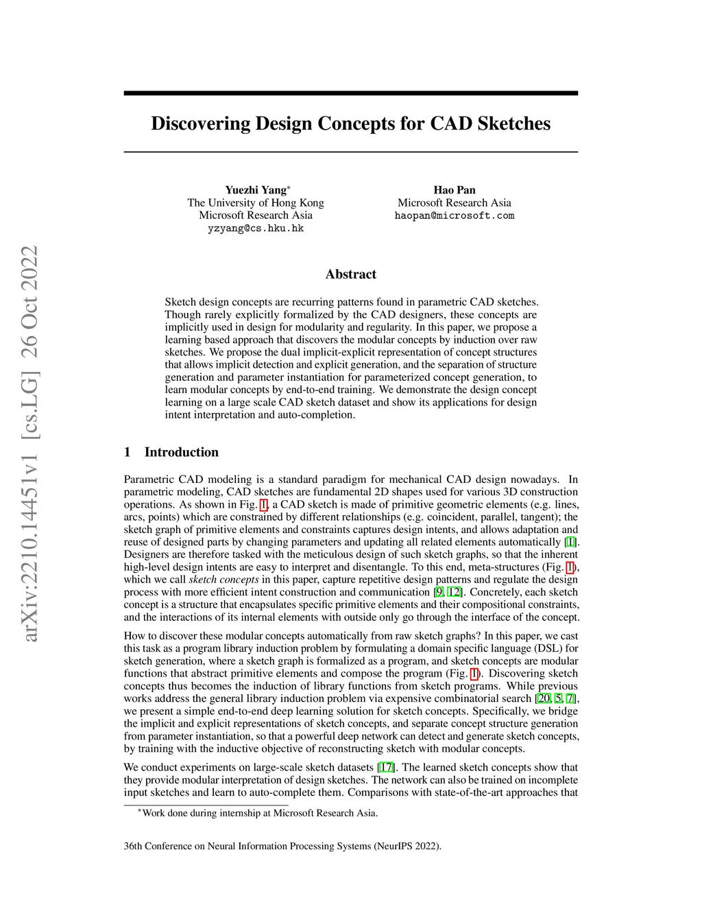 Discovering Design Concepts for CAD Sketches